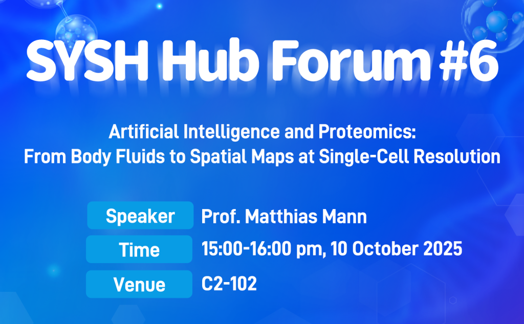 SYSH Hub Forum#6丨马普生化研究所主任讲述人工智能与蛋白质组学11 Oct 202510月10日,SYSH Hub Forum第六场学术论坛《人工智能与蛋白质组学:从体液到单细胞分辨率的空间图谱》在香港科技大学(广州)C2 102圆满举办。本次论坛主题为生命科学与生物医学工程,由马普...