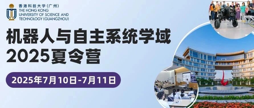报名开启!机器人与自主系统学域(ROAS)2025年度夏令营招募10 Jun 20252025年7月,港科大(广州)系统枢纽机器人与自主系统学域(ROAS)将举办夏令营活动,参与者可零距离感受世界级科研环境,并与顶尖学者面对面交流。诚挚邀请有志于深耕机器人学及自主系统领域的同学深度感受...